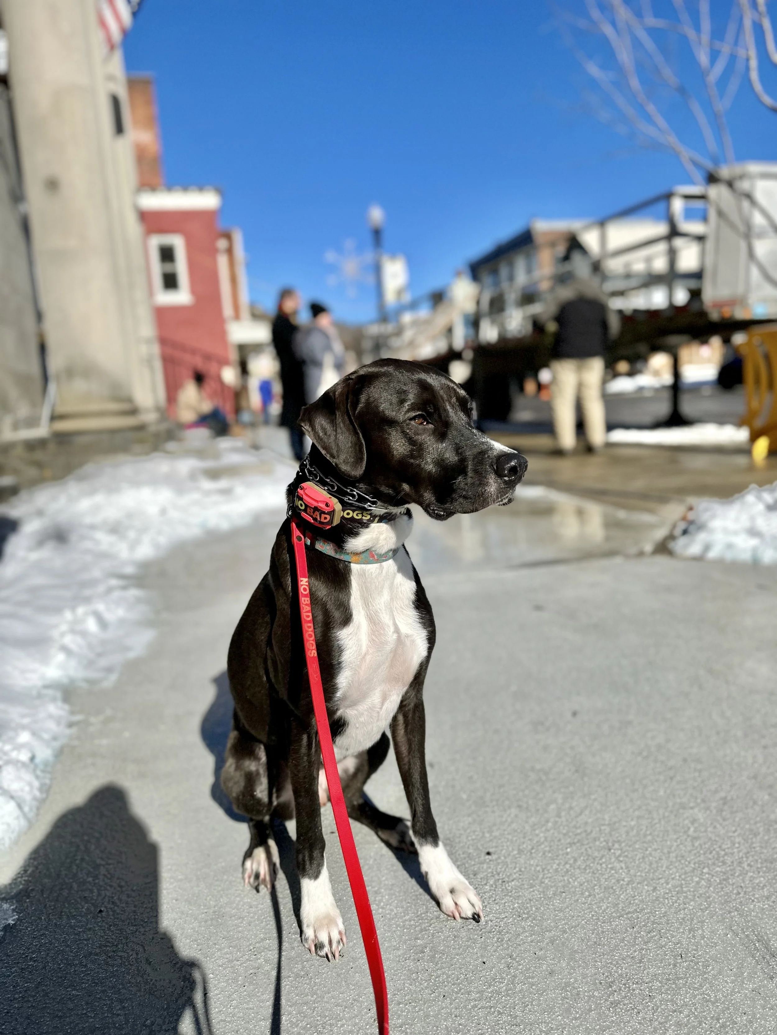 This morning I took Nico for a walk through downtown Saranac Lake before the Winter Carnival parade started. We visited a Paul Smith’s College Woodsman Team demonstration and walked up and down Main St. Nico saw tons of people, including little kids and people dressed up in costumes. We also walked within feet of other dogs. He only pulled once when a little dog charged at him. He was doing so well we decided to practice his ‘sit stay’ in several locations near lots of people and a few dogs. He nailed every one. I’m really grateful for Upstate Canine Academy and proud of Nico. He’s doing really well with his obedience.