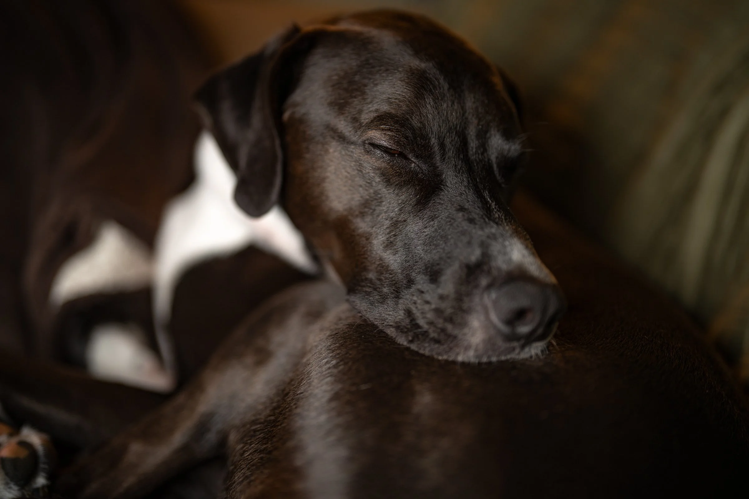 Nico often curls up into a nice little ball while lying on the couch with us.
